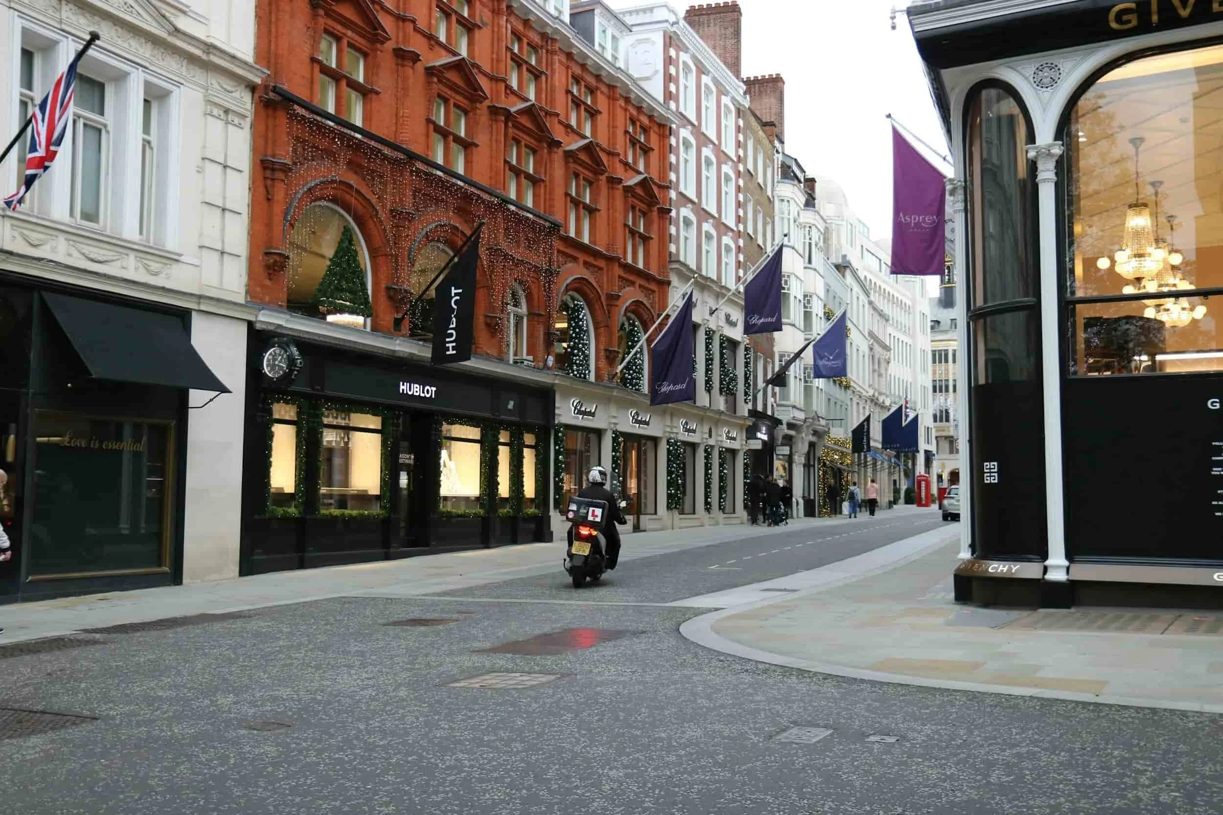 For the Classics: Bond Street and Mount Street (Mayfair). Calm luxury energy.