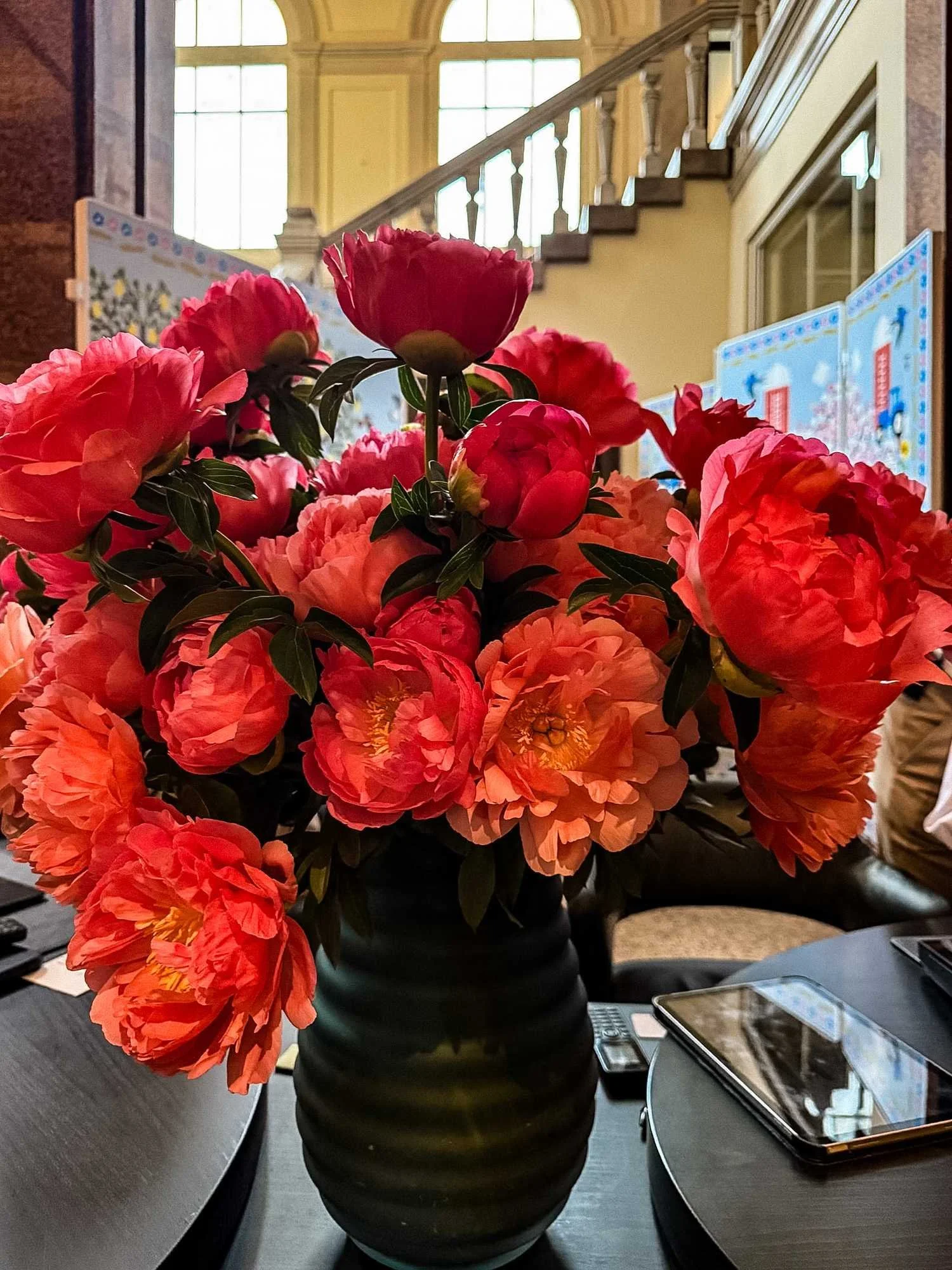 The flowers at the checkin desk were beautiful